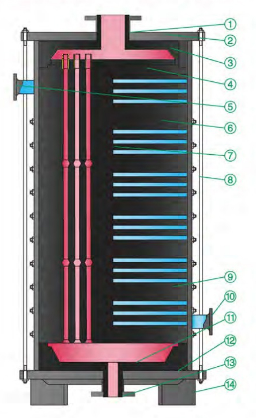 The sealing system integrates three key components: a graphite head, a one-piece graphite heat exchanger block, and a sealing hot plate. Due to its seamless, monolithic design, the exchanger block exhibits high structural strength and excellent shock resistance by withstanding pressure as a complete unit. Meanwhile, the water-side plate is fabricated as a casting, allowing for straightforward repair, assembly, and disassembly.